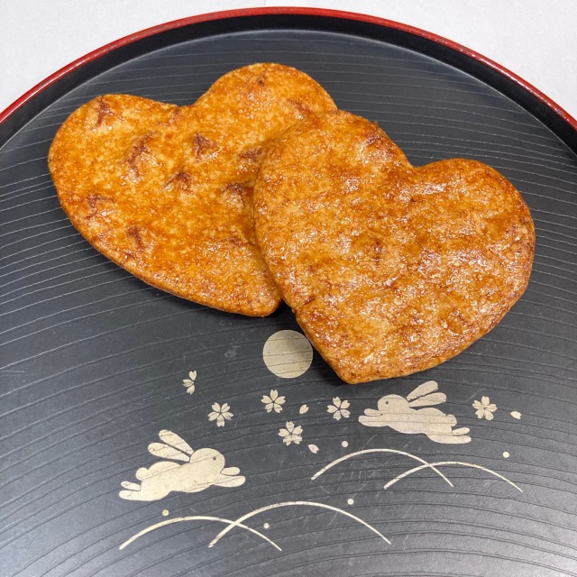 ハート型のせんべいを一枚一枚焼き上げ、甘辛たまり醤油味に仕上げました。 甘いものやチョコレートは苦手・・という方にもピッタリ。