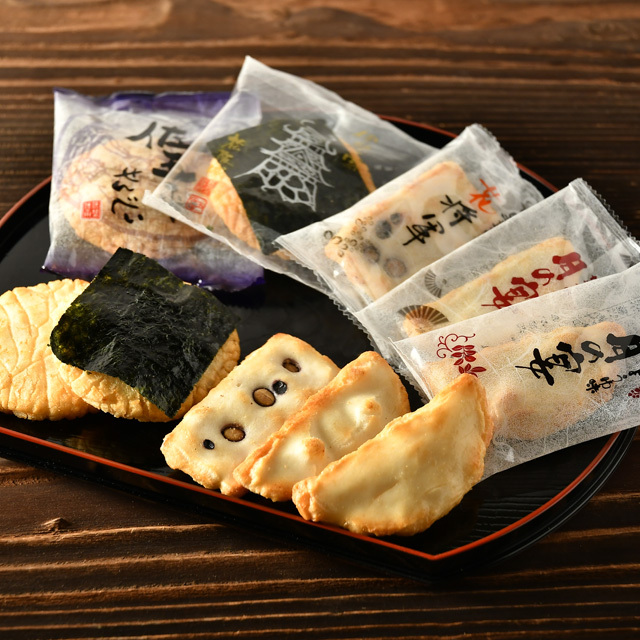 | 原材料名 | 【松阪城】うるち米(国産)、植物油脂、米菓調味液(たまりしょうゆ、水飴)、砂糖、発酵調味料、米菓用調味液(果糖ぶどう糖液糖、しょうゆ、食塩)、ポークエキス(豚骨抽出エキス、食塩)、海苔、澱粉分解物/調味料(アミノ酸等) 増粘剤(加工でんぷん)、酒精、乳酸、(一部に大豆・小麦・豚肉・サバを含む) 【花将軍】もち米(国産)、植物油脂、黒大豆、調味塩(食塩、香辛料、ガーリックパウダー、鰹節パウダー、蛋白加水分解物)/ 調味料(アミノ酸等)、(一部に大豆・サバを含む) 【月の宴(しょうゆ)】もち米(国産)、調味液(醤油、水飴、植物油脂、デキストリン、食塩、砂糖)、砂糖、風味調味料(食塩、砂糖、かつお節粉末、かつお節エキス)/酒精、乳化剤、酸化防止剤(チャ抽出物、V.E)、調味料(アミノ酸等)、酸味料、(一部に大豆・小麦を含む) 【月の宴(サラダ)】もち米(国産)、植物油脂、調味塩(食塩、香辛料、ガーリックパウダー、鰹節パウダー、蛋白加水分解物)/調味料(アミノ酸等)、(一部に大豆・サバを含む) 【佐五平せんべい】うるち米(国産)、植物油脂、米菓調味液(たまりしょうゆ、水飴)、砂糖、発酵調味料、米菓用調味液(果糖ぶどう糖液糖、しょうゆ、食塩)、ポークエキス(豚骨抽出エキス、食塩)/調味料(アミノ酸等) 増粘剤(加工でんぷん)、酒精、乳酸、(一部に大豆・小麦・豚肉・サバを含む) |